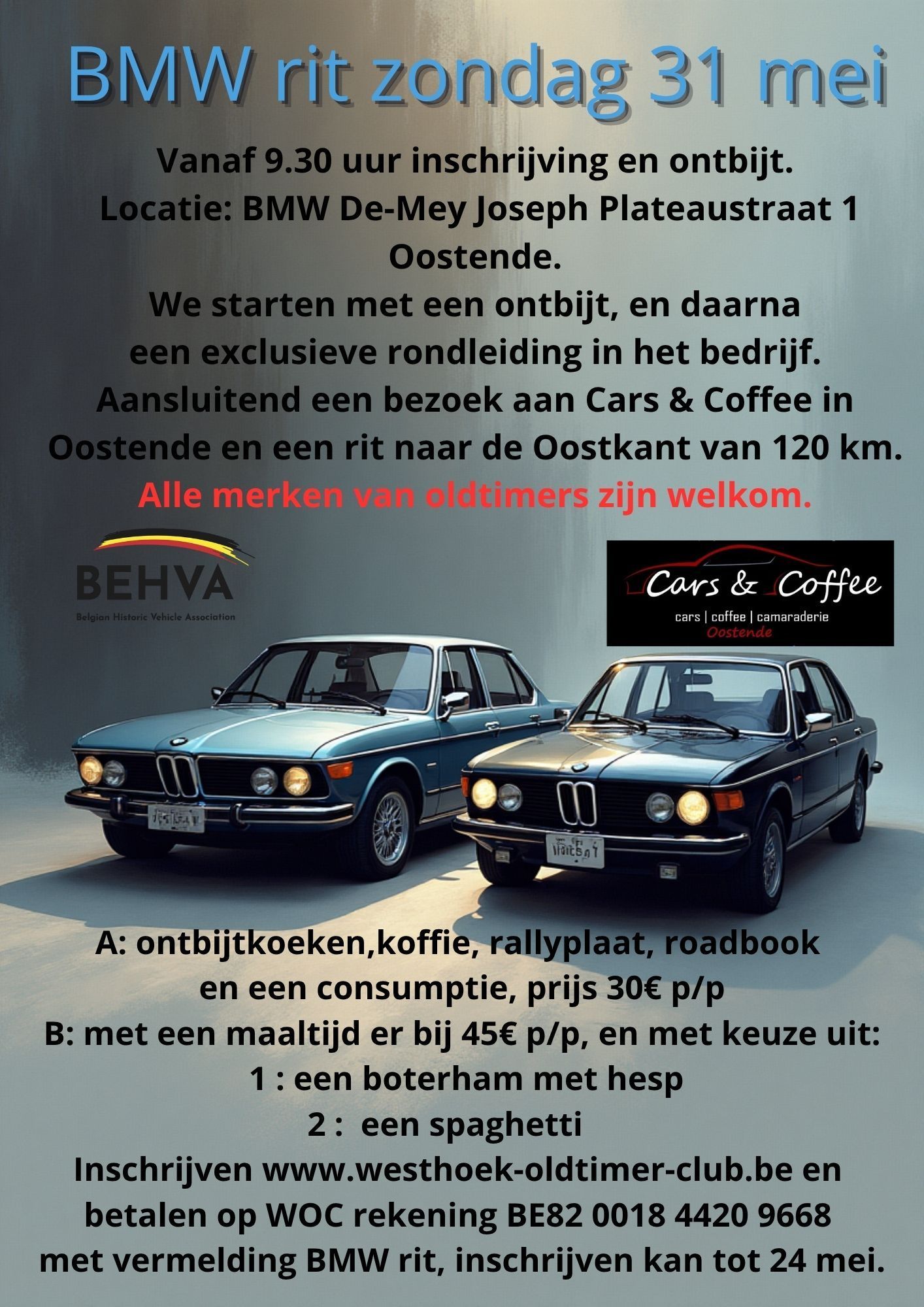 - Zondag 30 mei een rit in combinatie met een bezoek aan Cars & Coffee Oostende.